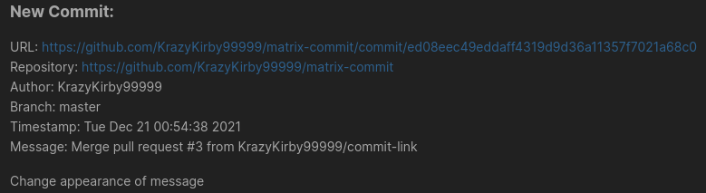 • The bridge has now been renamed from matrix-github to matrix-hookshot.