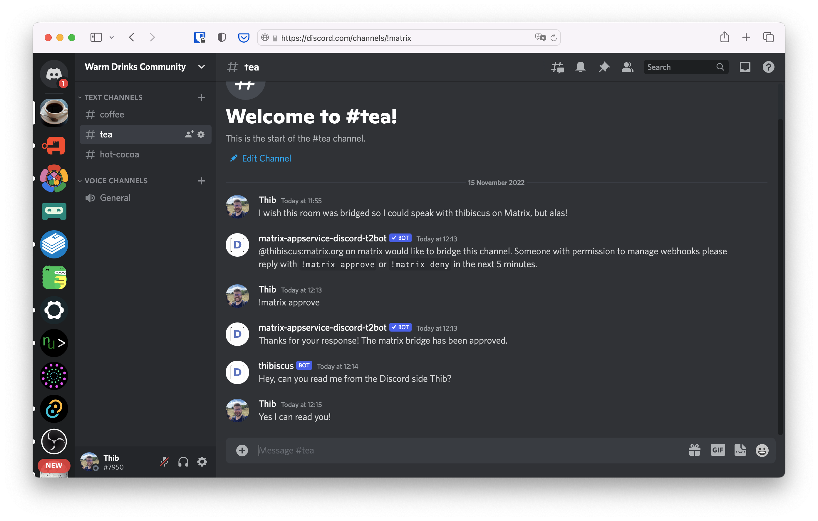 If you're interested in self-hosting your bridge or discovering all the Discord bridge implementations, please head to the Ecosystem > Bridges section of this website.